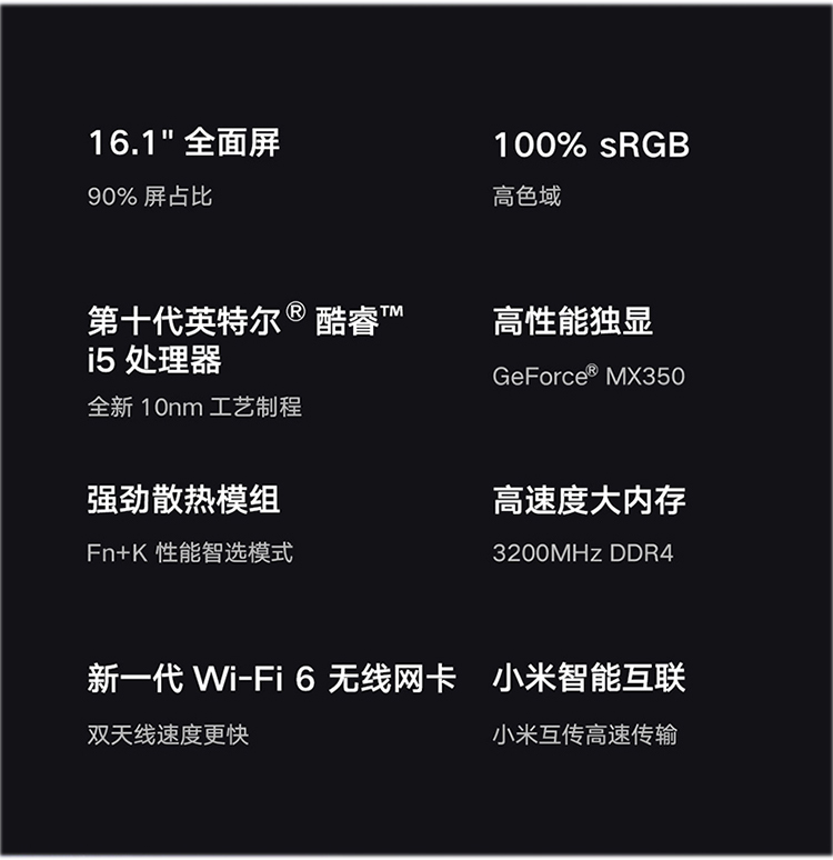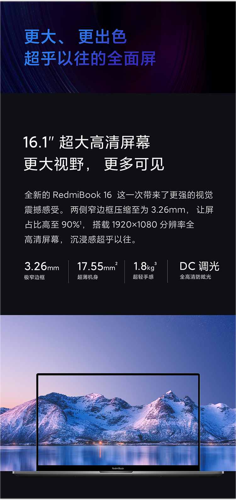 RedmiBook 16 (第十代英特尔酷睿i5-1035G1 16G 512G MX350 2G 100%sRGB)